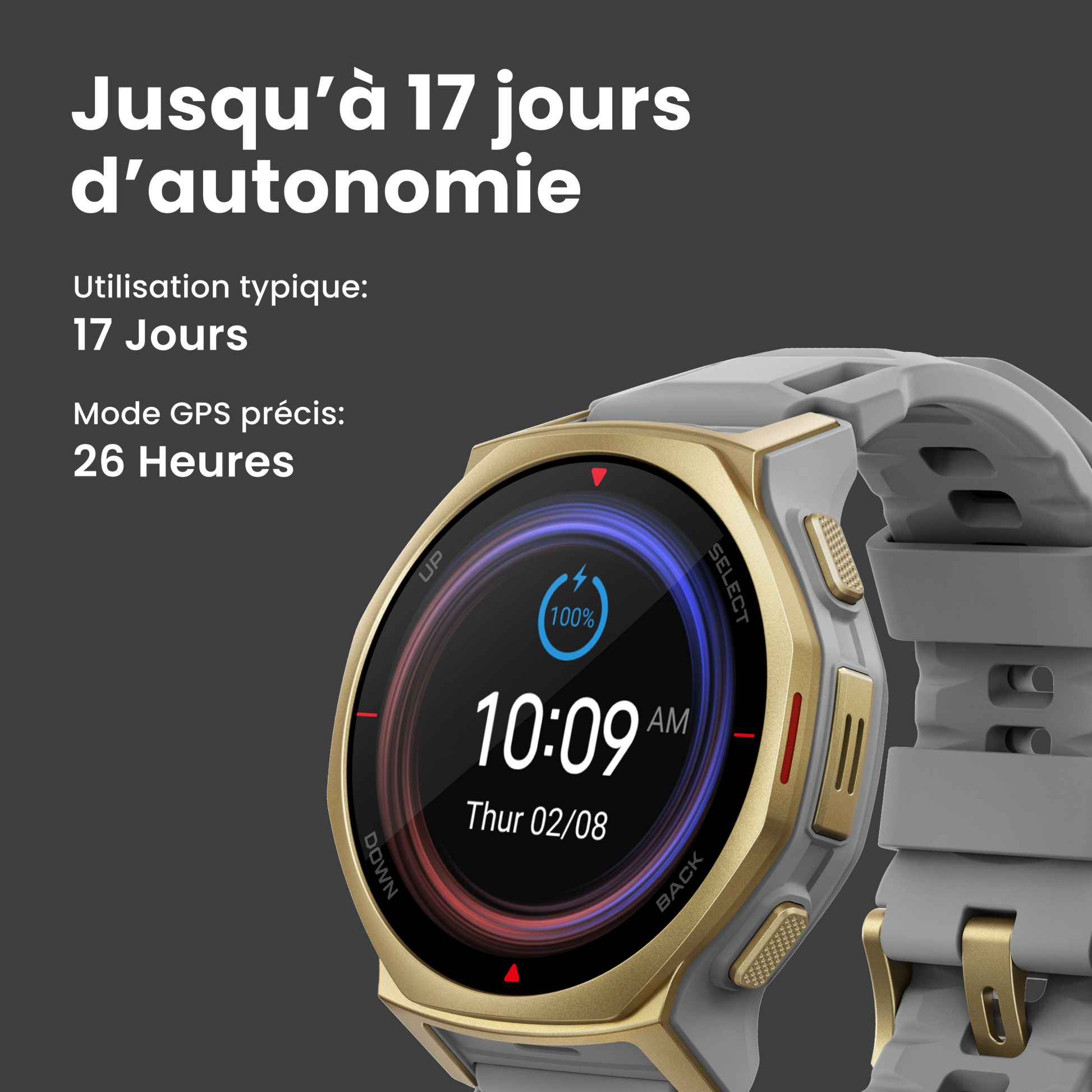 Conçue pour vous accompagner dans vos aventures les plus longues, cette montre offre une autonomie exceptionnelle ⁸ pour que vous puissiez vous concentrer sur le voyage, pas sur le chargeur. Que vous vous attaquiez à des randonnées de plusieurs jours, à des semaines de course ou à des missions lointaines, elle reste alimentée lorsque vous en avez le plus besoin.