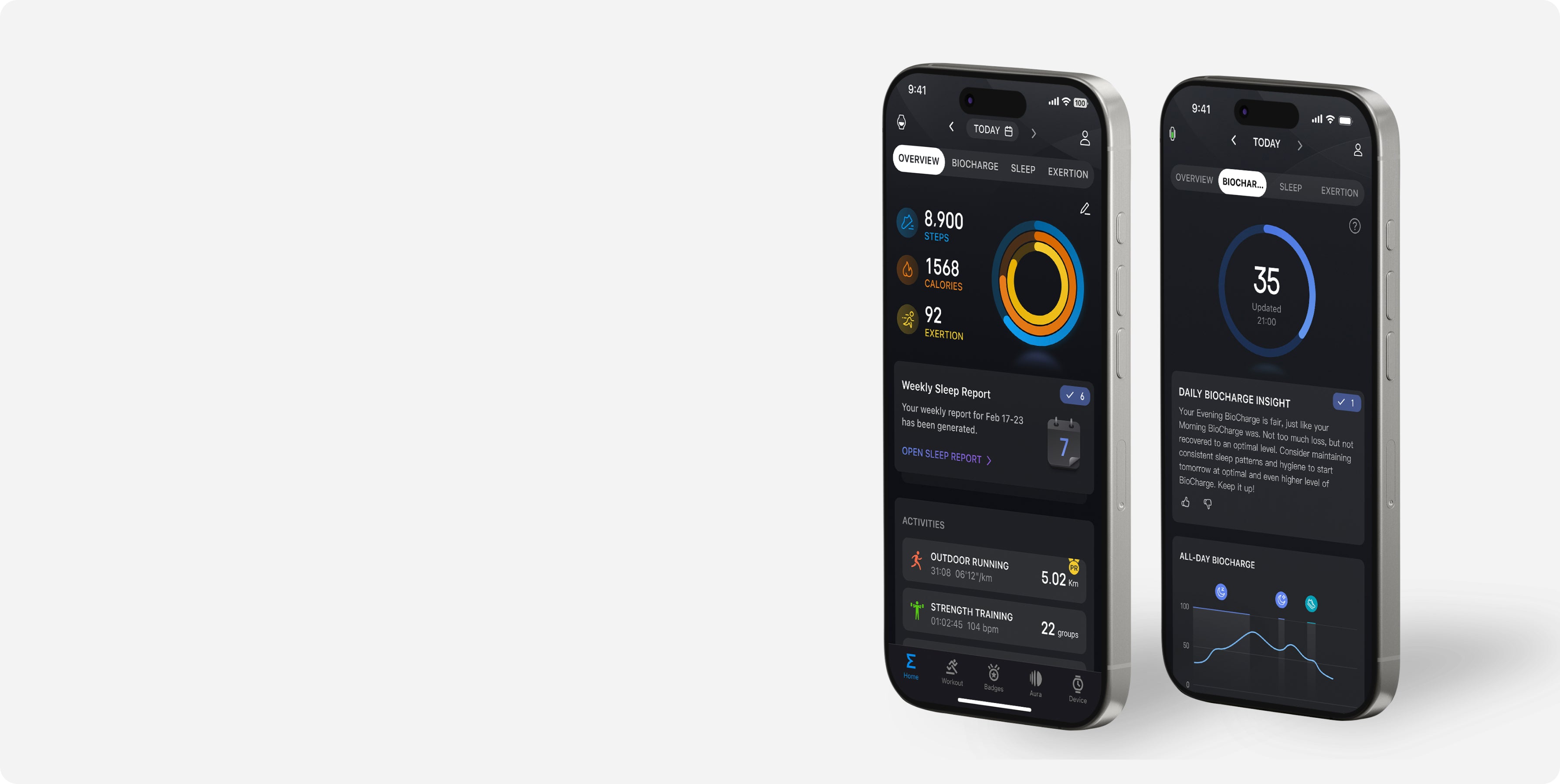 Dès votre réveil après une nuit de repos, votre score BioCharge ™ s'adaptera en fonction de vos entraînements, activités et niveaux de stress quotidiens. -
