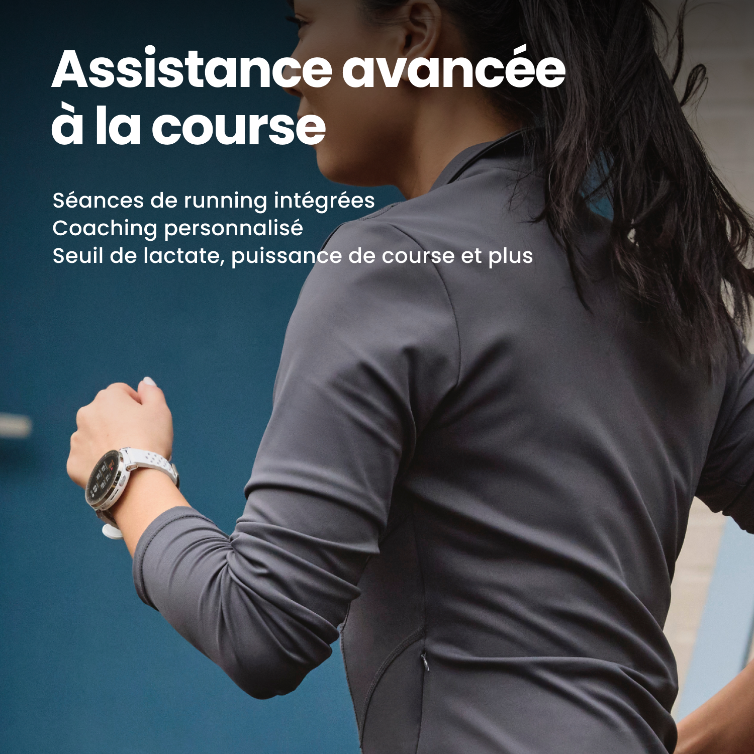 Entraînements de course intégrés, plans d'entraînement Zepp Coach™, seuil de lactate, puissance de course, temps de contact au sol, gestion de l'équipement de course, mode Track Run, correction intelligente de la trajectoire, meneur d'allure virtuel