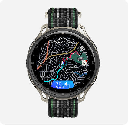 Définissez une distance et une direction cibles, et la montre génère des itinéraires aller-retour optimisés, vous aidant ainsi à explorer de nouveaux chemins tout en respectant votre distance d'entraînement.