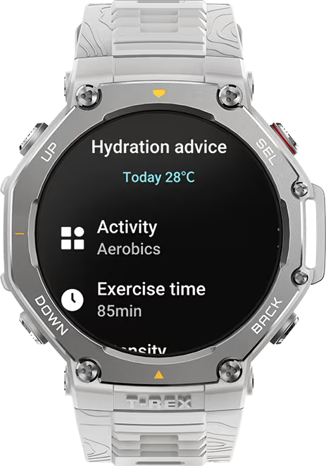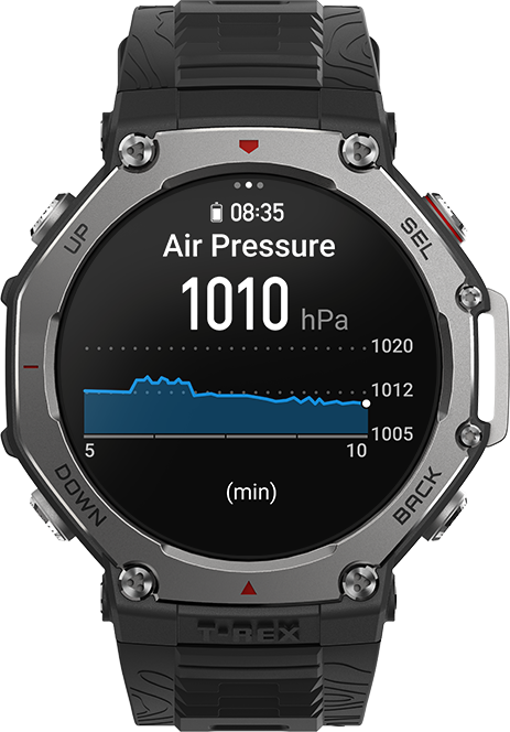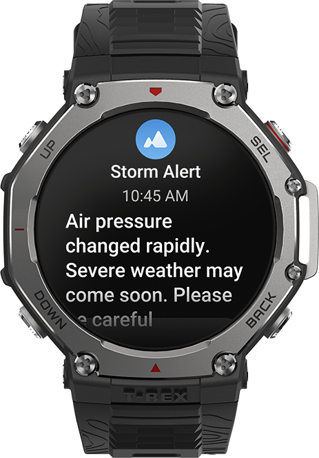 Des données d'altitude détaillées aux alertes de temps violent en passant par les informations environnementales, l'Amazfit T-Rex 3 a tout ce dont vous avez besoin pour partir à l'aventure en toute confiance.